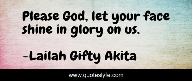 This page presents the quote "Please God, let your face shine in glory on us.". Author of this quote is Lailah Gifty Akita. This quote is about christian, god, call-on-god, favour, praying, hope,.
