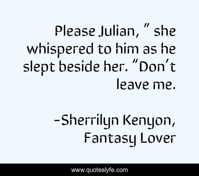 This page presents the quote "Please Julian, ” she whispered to him as he slept beside her. “Don’t leave me.". Author of this quote is Sherrilyn Kenyon, Fantasy Lover. .