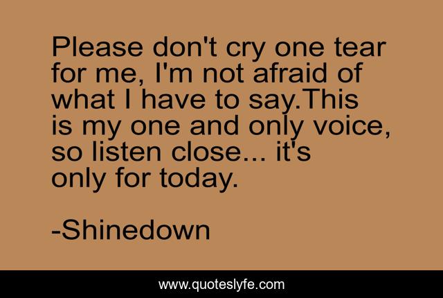 This page presents the quote "Please don't cry one tear for me, I'm not afraid of what I have to say.This is my one and only voice, so listen close... it's only for today.". Author of this quote is Shinedown. This quote is about shinedown, music,.