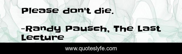 This page presents the quote "Please don't die.". Author of this quote is Randy Pausch, The Last Lecture. This quote is about death, love, science, tumor, humor, inspirational, enthusiasm, affection,.