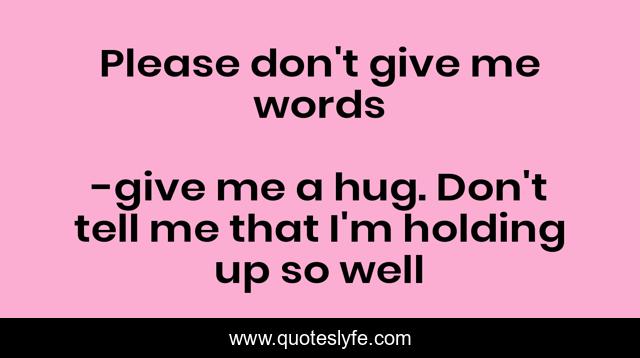 "give me a hug. Don't tell me that I'm holding up so well Quotes." Quoteslyfe.com, 2025. Mon. 08 Dec. 2025. <https://www.quoteslyfe.com/quote/Please-don-t-give-me-words-161802>.