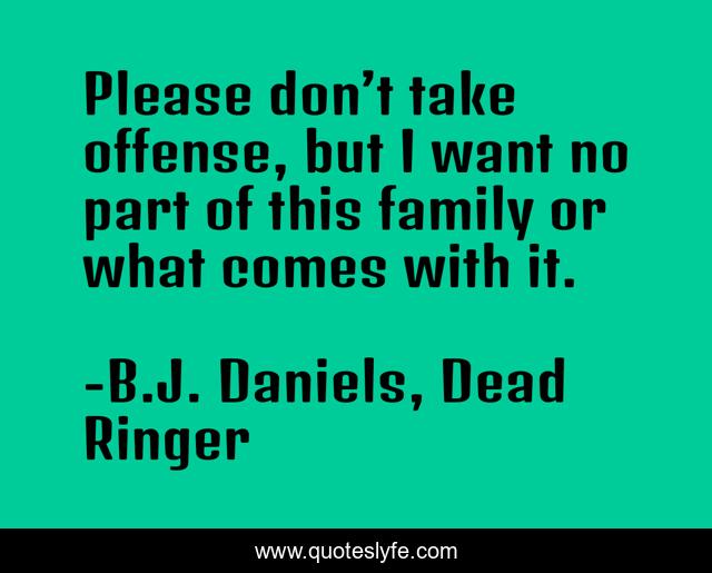 This page presents the quote "Please don’t take offense, but I want no part of this family or what comes with it.". Author of this quote is B.J. Daniels, Dead Ringer. This quote is about romance, suspense, western-romance,.