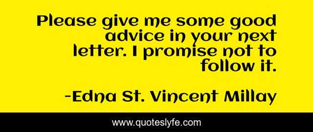 "Edna St. Vincent Millay Quotes." Quoteslyfe.com, 2025. Sat. 06 Dec. 2025. <https://www.quoteslyfe.com/quote/Please-give-me-some-good-advice-in-303776>.