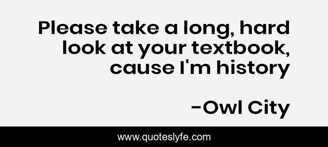 This page presents the quote "Please take a long, hard look at your textbook, cause I'm history". Author of this quote is Owl City. This quote is about love, affection, song,.