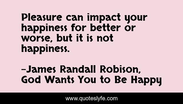 This page presents the quote "Pleasure can impact your happiness for better or worse, but it is not happiness.". Author of this quote is James Randall Robison, God Wants You to Be Happy. This quote is about pleasure, happiness, happy,.