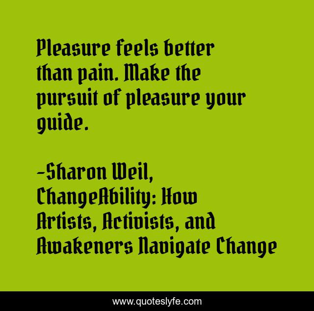 "Sharon Weil, ChangeAbility: How Artists, Activists, and Awakeners Navigate Change Quotes." Quoteslyfe.com, 2025. Sun. 07 Dec. 2025. <https://www.quoteslyfe.com/quote/Pleasure-feels-better-than-pain-Make-the-59925>.
