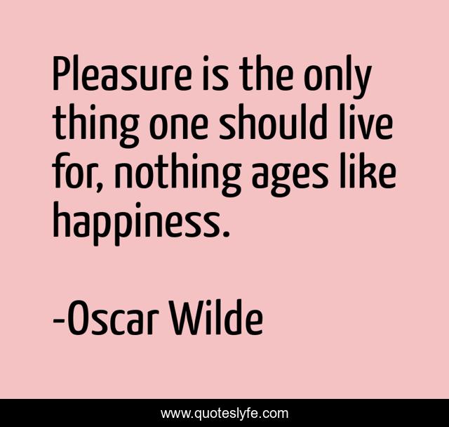 This page presents the quote "Pleasure is the only thing one should live for, nothing ages like happiness.". Author of this quote is Oscar Wilde. This quote is about pleasure, happiness, inspirational, enthusiasm,.