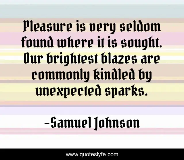 This page presents the quote "Pleasure is very seldom found where it is sought. Our brightest blazes are commonly kindled by unexpected sparks.". Author of this quote is Samuel Johnson. .