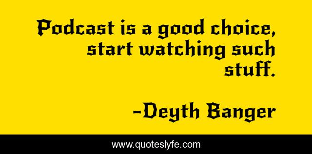 This page presents the quote "Podcast is a good choice, start watching such stuff.". Author of this quote is Deyth Banger. This quote is about start, choice, good, stuff,.
