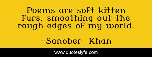 This page presents the quote "Poems are soft kitten furs. smoothing out the rough edges of my world.". Author of this quote is Sanober Khan. This quote is about poems, rough, kittens, poetry, softness,.