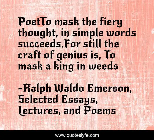 "Ralph Waldo Emerson, Selected Essays, Lectures, and Poems Quotes." Quoteslyfe.com, 2025. Sat. 06 Dec. 2025. <https://www.quoteslyfe.com/quote/PoetTo-mask-the-fiery-thought-in-simple-182054>.