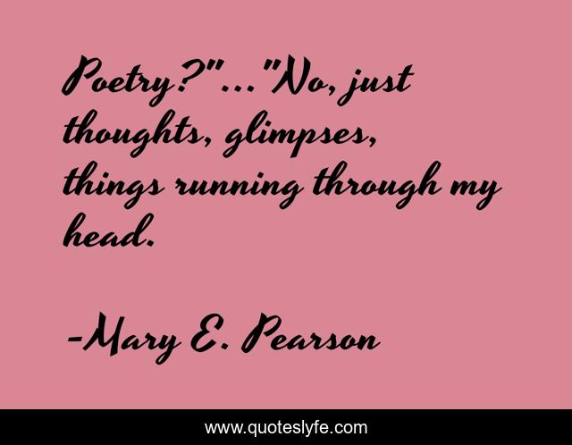 "Mary E. Pearson Quotes." Quoteslyfe.com, 2025. Fri. 05 Dec. 2025. <https://www.quoteslyfe.com/quote/Poetry-No-just-thoughts-glimpses-things-running-138174>.