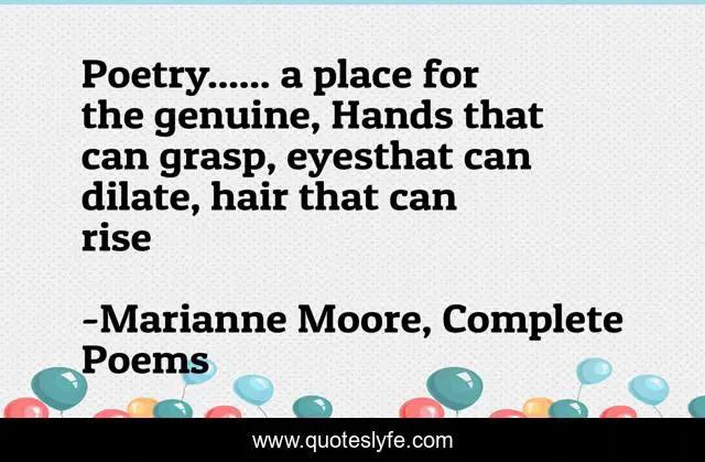 "Marianne Moore, Complete Poems Quotes." Quoteslyfe.com, 2025. Fri. 05 Dec. 2025. <https://www.quoteslyfe.com/quote/Poetry-a-place-for-the-genuine-Hands-25374>.