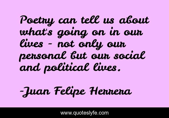 This page presents the quote "Poetry can tell us about what's going on in our lives - not only our personal but our social and political lives.". Author of this quote is Juan Felipe Herrera. This quote is about personal, political, social,.