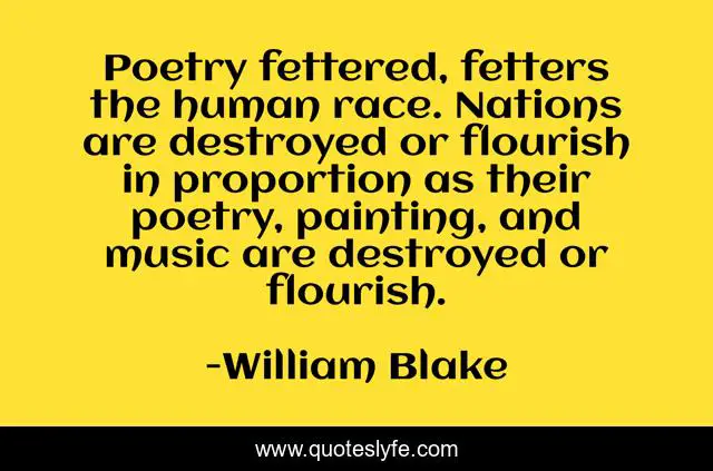 Poetry fettered, fetters the human race. Nations are destroyed or flourish in proportion as their poetry, painting, and music are destroyed or flourish.