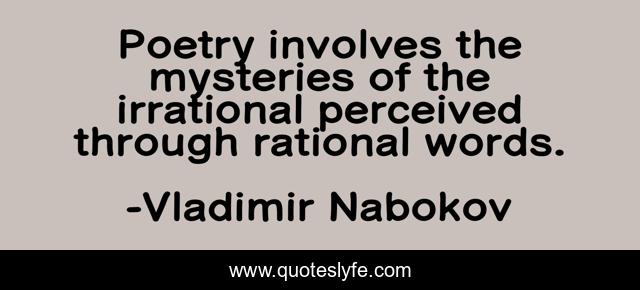 This page presents the quote "Poetry involves the mysteries of the irrational perceived through rational words.". Author of this quote is Vladimir Nabokov. This quote is about mysteries, through, words,.