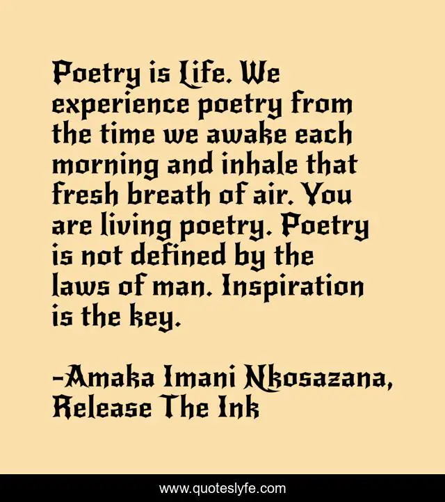 "Amaka Imani Nkosazana, Release The Ink Quotes." Quoteslyfe.com, 2025. Mon. 08 Dec. 2025. <https://www.quoteslyfe.com/quote/Poetry-is-Life-We-experience-poetry-from-97434>.