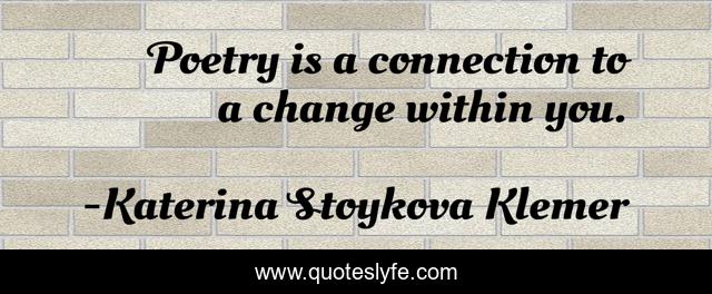 This page presents the quote "Poetry is a connection to a change within you.". Author of this quote is Katerina Stoykova Klemer. This quote is about personal-growth, process, poetry, writing, reading, change,.