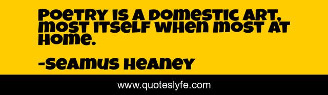 This page presents the quote "Poetry is a domestic art, most itself when most at home.". Author of this quote is Seamus Heaney. This quote is about home, art, most,.
