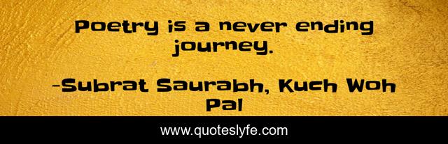 "Subrat Saurabh, Kuch Woh Pal Quotes." Quoteslyfe.com, 2025. Sat. 06 Dec. 2025. <https://www.quoteslyfe.com/quote/Poetry-is-a-never-ending-journey-191325>.
