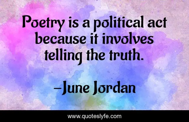 This page presents the quote "Poetry is a political act because it involves telling the truth.". Author of this quote is June Jordan. This quote is about political, poetry, act,.