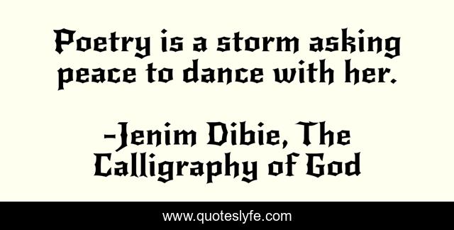 "Jenim Dibie, The Calligraphy of God Quotes." Quoteslyfe.com, 2025. Sun. 07 Dec. 2025. <https://www.quoteslyfe.com/quote/Poetry-is-a-storm-asking-peace-to-66405>.