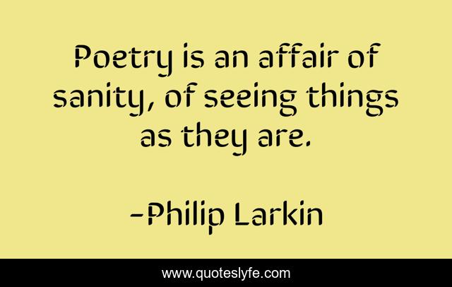 This page presents the quote "Poetry is an affair of sanity, of seeing things as they are.". Author of this quote is Philip Larkin. This quote is about sanity, insanity, poetry, writing,.