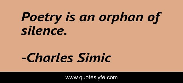 This page presents the quote "Poetry is an orphan of silence.". Author of this quote is Charles Simic. .