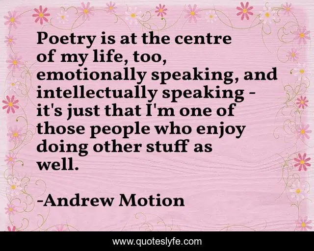 This page presents the quote "Poetry is at the centre of my life, too, emotionally speaking, and intellectually speaking - it's just that I'm one of those people who enjoy doing other stuff as well.". Author of this quote is Andrew Motion. This quote is about enjoy, life, people,.