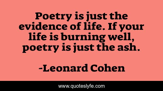 This page presents the quote "Poetry is just the evidence of life. If your life is burning well, poetry is just the ash.". Author of this quote is Leonard Cohen. This quote is about life, evidence, poetry, writing, ash, inspiration,.