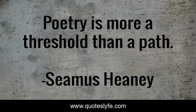 "Seamus Heaney Quotes." Quoteslyfe.com, 2025. Fri. 05 Dec. 2025. <https://www.quoteslyfe.com/quote/Poetry-is-more-a-threshold-than-a-326158>.