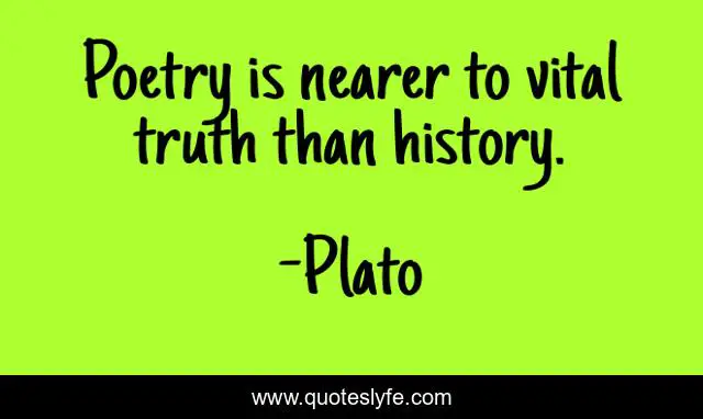 This page presents the quote "Poetry is nearer to vital truth than history.". Author of this quote is Plato. This quote is about poetry, history,.