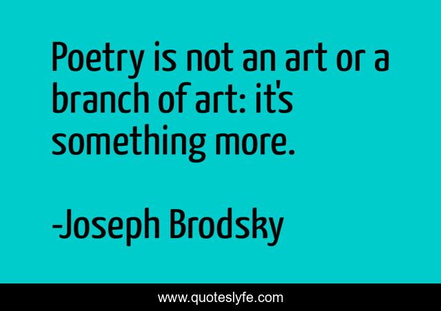 This page presents the quote "Poetry is not an art or a branch of art: it's something more.". Author of this quote is Joseph Brodsky. This quote is about art, something, branch,.