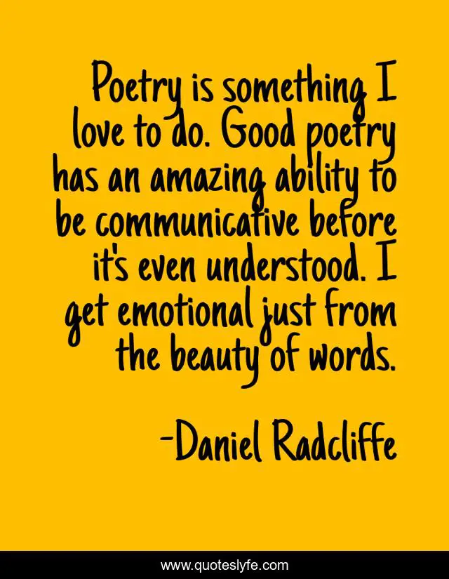 This page presents the quote "Poetry is something I love to do. Good poetry has an amazing ability to be communicative before it's even understood. I get emotional just from the beauty of words.". Author of this quote is Daniel Radcliffe. This quote is about good, love, beauty, affection,.