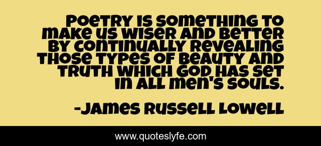 This page presents the quote "Poetry is something to make us wiser and better by continually revealing those types of beauty and truth which God has set in all men's souls.". Author of this quote is James Russell Lowell. .