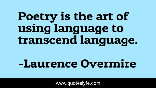 This page presents the quote "Poetry is the art of using language to transcend language.". Author of this quote is Laurence Overmire. This quote is about art, poetry, language,.