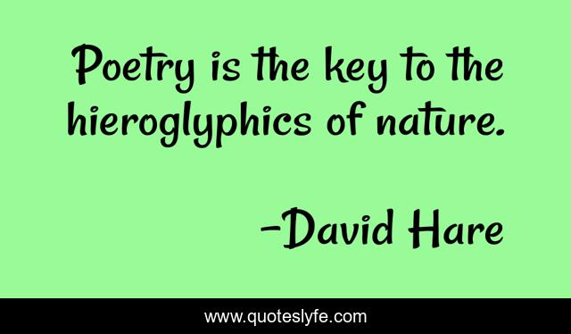 This page presents the quote "Poetry is the key to the hieroglyphics of nature.". Author of this quote is David Hare. This quote is about poetry, key,.
