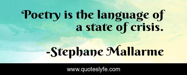 This page presents the quote "Poetry is the language of a state of crisis.". Author of this quote is Stephane Mallarme. .