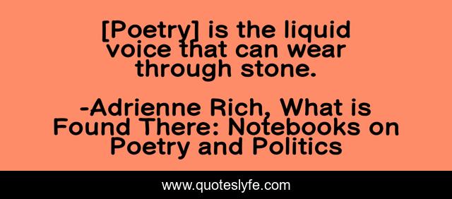 This page presents the quote "[Poetry] is the liquid voice that can wear through stone.". Author of this quote is Adrienne Rich, What is Found There: Notebooks on Poetry and Politics. .