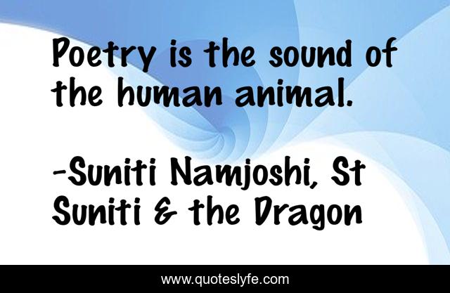 This page presents the quote "Poetry is the sound of the human animal.". Author of this quote is Suniti Namjoshi, St Suniti & the Dragon. .