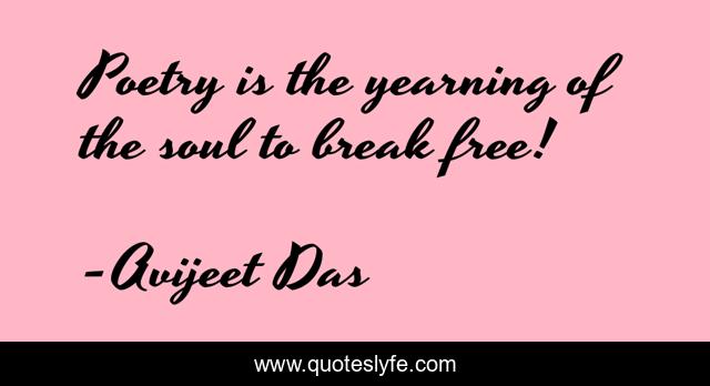 This page presents the quote "Poetry is the yearning of the soul to break free!". Author of this quote is Avijeet Das. This quote is about break-free, writer, poetry, soul, yearning, poet,.