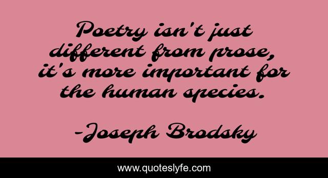 This page presents the quote "Poetry isn't just different from prose, it's more important for the human species.". Author of this quote is Joseph Brodsky. This quote is about different, important, human,.