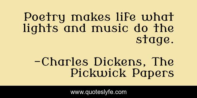 This page presents the quote "Poetry makes life what lights and music do the stage.". Author of this quote is Charles Dickens, The Pickwick Papers. .