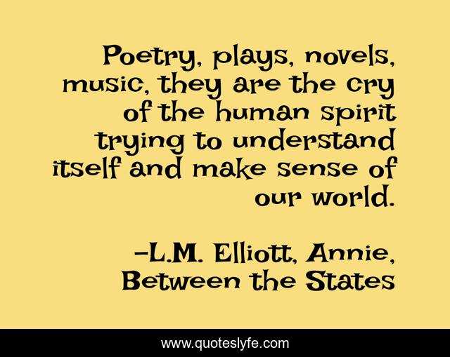 "L.M. Elliott, Annie, Between the States Quotes." Quoteslyfe.com, 2025. Tue. 09 Dec. 2025. <https://www.quoteslyfe.com/quote/Poetry-plays-novels-music-they-are-the-24457>.