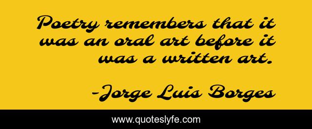 This page presents the quote "Poetry remembers that it was an oral art before it was a written art.". Author of this quote is Jorge Luis Borges. This quote is about art, remembers, before,.