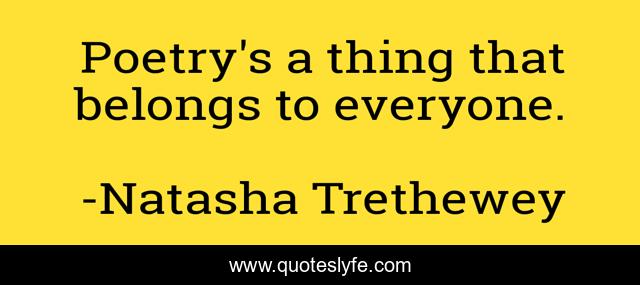 This page presents the quote "Poetry's a thing that belongs to everyone.". Author of this quote is Natasha Trethewey. This quote is about thing, belongs, everyone,.