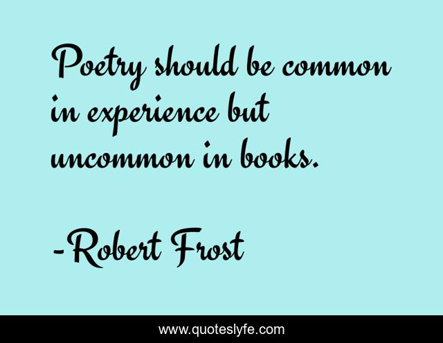 This page presents the quote "Poetry should be common in experience but uncommon in books.". Author of this quote is Robert Frost. This quote is about poets, poetry,.
