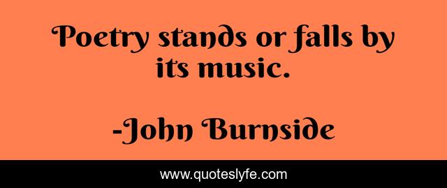 This page presents the quote "Poetry stands or falls by its music.". Author of this quote is John Burnside. This quote is about music, stands, falls,.