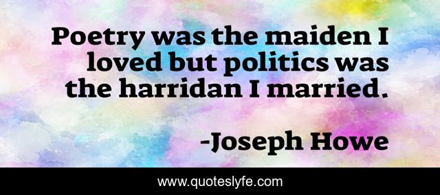 This page presents the quote "Poetry was the maiden I loved but politics was the harridan I married.". Author of this quote is Joseph Howe. .