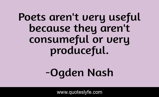 This page presents the quote "Poets aren't very useful because they aren't consumeful or very produceful.". Author of this quote is Ogden Nash. This quote is about poets, poetry,.